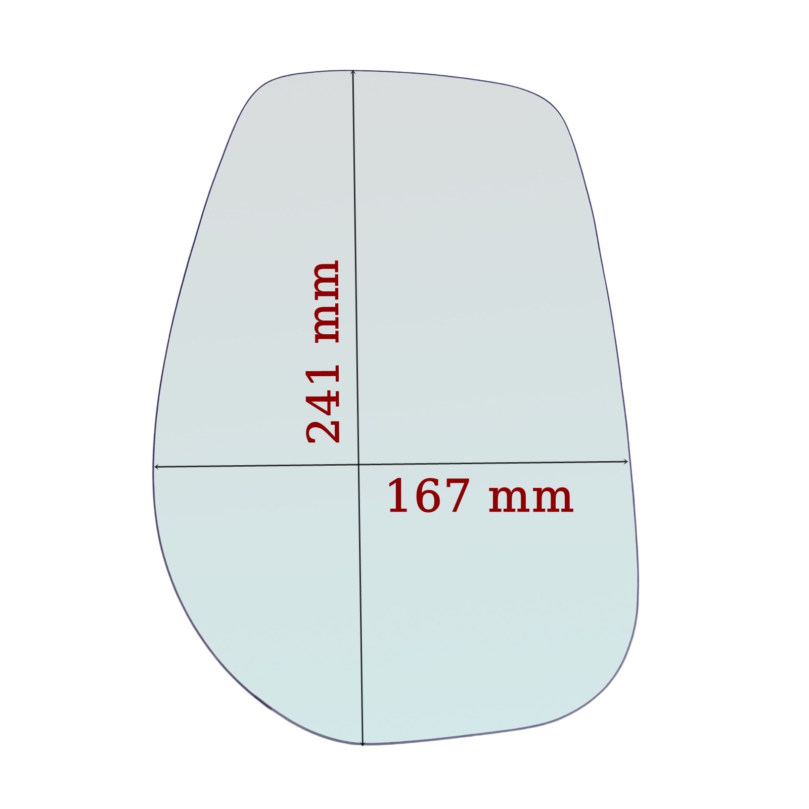 Offriamo un vetro specchio retrovisore nudo biadesivo, di colore cromato, (non asferico) identico a quello originale. Questo vetro ha uno spessore di circa 2-3 mm e si adatta perfettamente alle specifiche del tuo veicolo.