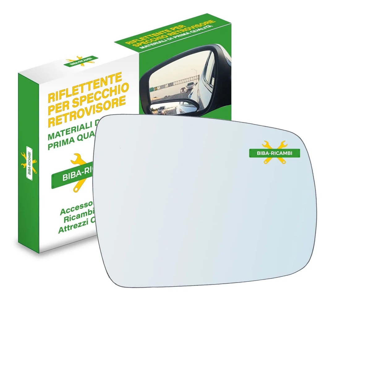 Offriamo un vetro specchio retrovisore nudo bi-adesivo, di colore cromato, (non asferico) identico a quello originale. Questo vetro ha uno spessore di circa 2-3 mm e si adatta perfettamente alle specifiche del tuo veicolo.